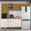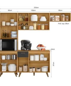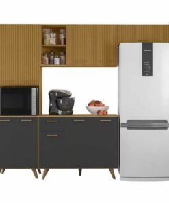 3{%%}Descrição{%%}Armário Cozinha Olinda Ripado 3D 4 Peças Paneleiro + Aéreo 1.05m + Balcão e Aéreo de Geladeira Freijó/Grafite Poliman