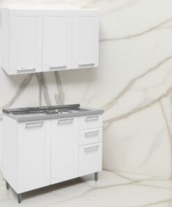 Armário Aéreo 3 Portas 6009590 + Balcão 2 Gavetas 6015590 Múltipla + Tampo Pia Branco – BERTOLINI
