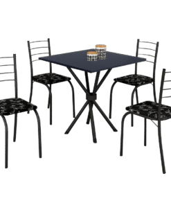 Mesa Atlanta Base Cabo Frio Marrom Tampo Pedra Off 100×60 4 Cadeiras Assento Preto – Teixeira