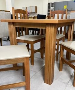 Mesa de Jantar Londrina 120×80 Cinamomo Rufato + 4 Cad. Dubai Linho Bege Madeira – Art Assento
