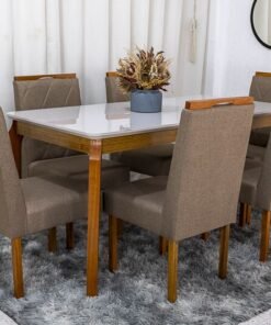 Mesa de Jantar Alegra 1.60×0.80 Com 6 Cadeiras Grécia – Cinamomo/Bege