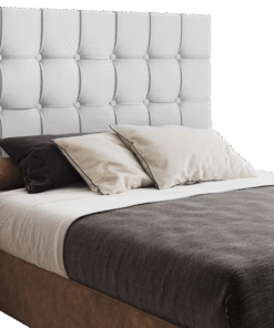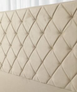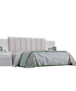 Cabeceira Casal Íris Larg. 1.40m Acolchoada Linho Bege e Detalhe Ripado Cinamomo/Off D Doro