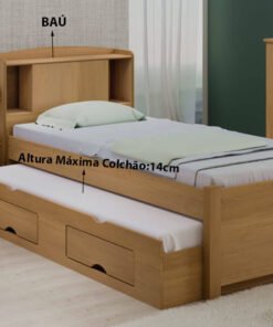Cama Solteiro Baú Tamires + Auxiliar Mili Nature – MADEC/VJ MÓVEIS