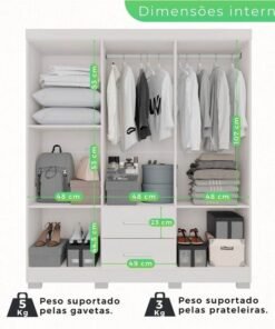 Guarda-Roupa Solteiro Estrela 6 Portas 2 Gavetas Branco Larg. 1.50m Sallêto Pés Grátis