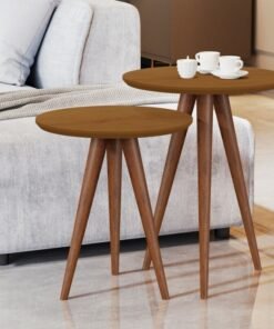 Conjunto Mesa Lateral Mezanino Classic Off White/Nature Tebarrot