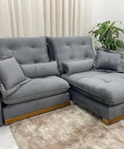 Sofá Retrátil e Reclinável Luanda/Isabella/Barcelona 2,50 m Veludo Grafite – TREVO ESTOFADOS