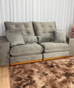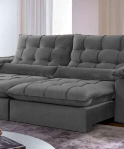 Sofá Retrátil e Reclinável Malu 2,50 m Cinza Grafite – D’VITRINE ESTOFADOS