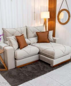 Sofá Retrátil Reclinável Gran Bello 2.00m Linho Bege – Molas Ensacadas