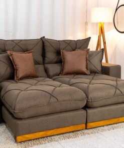 Sofá Retrátil Reclinável Gran Bello 2.00m Veludo Capuccino – Molas Ensacadas