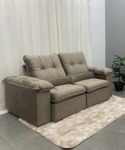 Sofá Retrátil e Reclinável Brasão 2,00 m Veludo Bege – MD ESTOFADOS