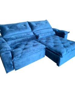 Sofá Retrátil e Reclinável Brasão 2,00 m Veludo Azul – MD ESTOFADOS