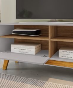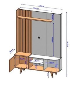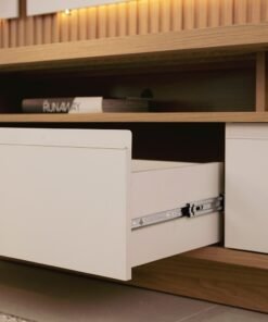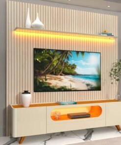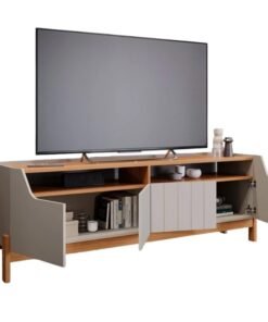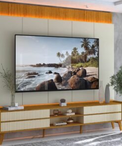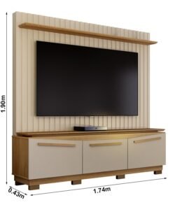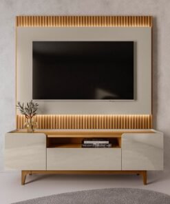 Painel até 85″ Nobre 230 Naturale + Rack Nobre 210 (Pés de Madeira) Off White/Naturale – GELIUS