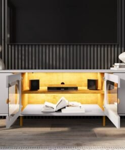 Painel Nobre 230 Off White + Rack Nobre 210 (Pés de Vidro) Off White/Naturale – GELIUS