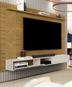 Painel até 75″ Arbo 1.9 Cedro + Rack Juquehy Off White/Naturale – EDN MÓVEIS + BECHARA