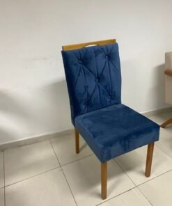 Mesa Redonda Simpatia 108 Cinamono com 4 Cadeiras Yasmim Veludo Azul – JCM MOVELARIA + KM DECOR