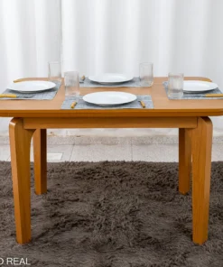 Mesa Pedro 120 Mel/Off White + 4 Cadeiras Grécia Mel/Linho Bege – ART ASSENTOS + HR MOVELARIA