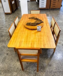 Mesa Isis 180 Freijó com 6 Cadeiras Yasmim Veludo – LEIFER + KM DECOR