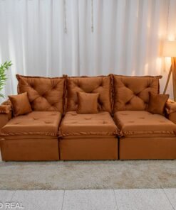 Sofá Retrátil Reclinável Porto Madri 2.70m Veludo Marrom Café – D28 Pró Aditivada