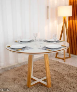 Mesa de Jantar Bali circular 1.10×1.10Com 4 Cadeiras Grécia – Cinamomo/Off White