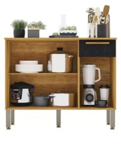 Balcão Cozinha Barcelona Carvalho/Grafite 3 Portas 2 Gavetas Larg. 1.20m – Sallêto