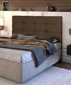 Cabeceira Casal Íris Larg. 1.40m Acolchoada Linho Bege e Detalhe Ripado Cinamomo/Off D Doro