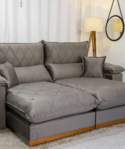 Sofá Retrátil Reclinável 2.50m Santiago Veludo Cinza 526 – Molas Ensacadas