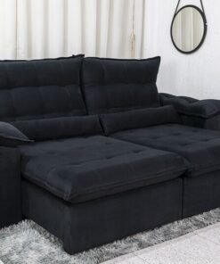 Sofá Retrátil Reclinável Emanuelly Veludo Preto 21 Larg. 2.30m – D28 Soft