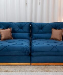 Sofá Retrátil Reclinável Grécia Veludo Azul Larg. 2.70m – Sem Caixa