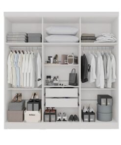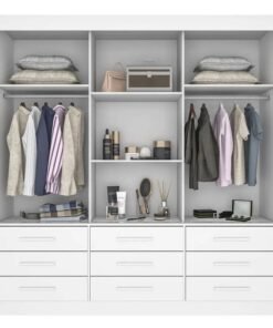 Guarda-Roupa Casal 3 Pts 8 Gav. Diamond Plus c/1 Espelho MDF Branco Larg. 2.41m Novo Horizonte