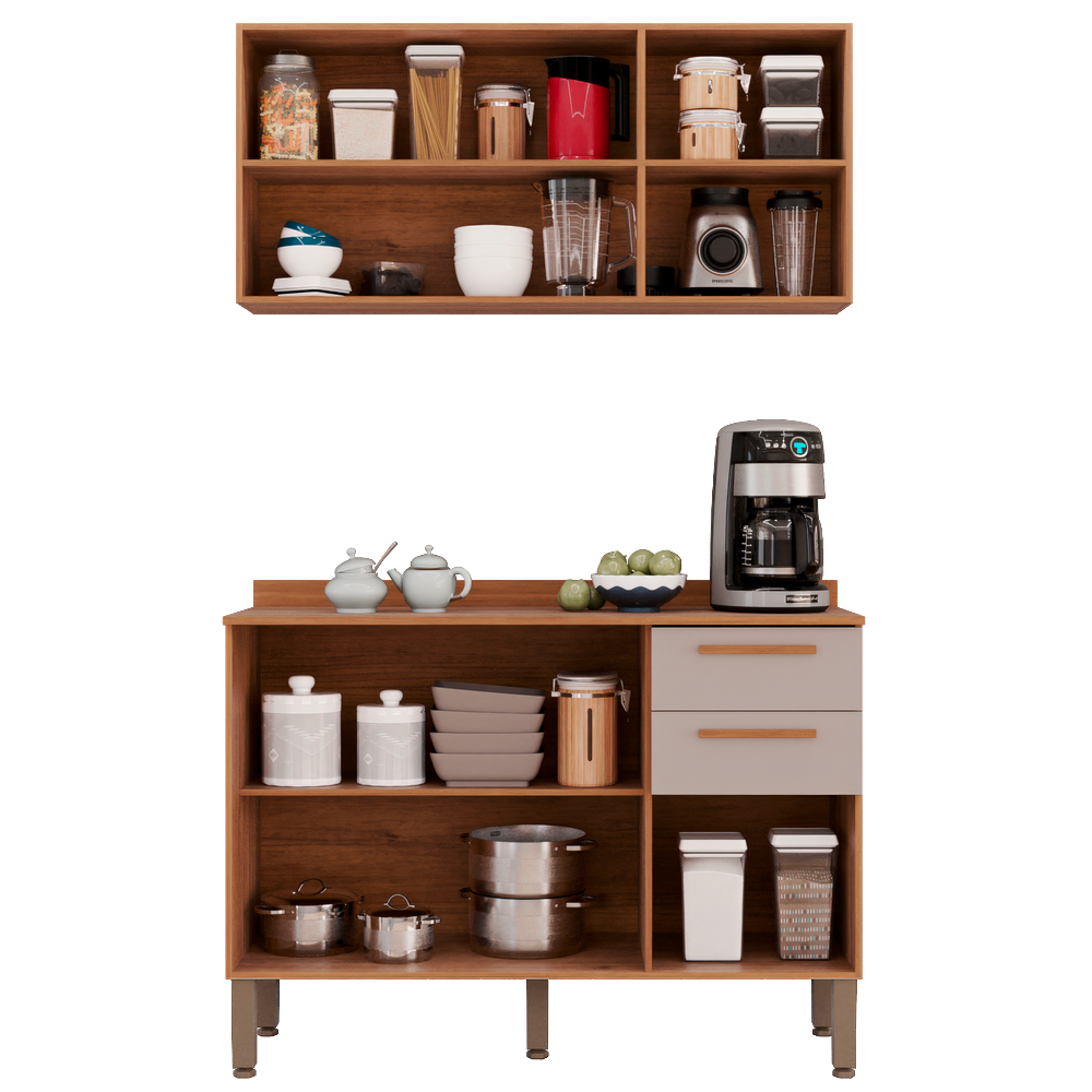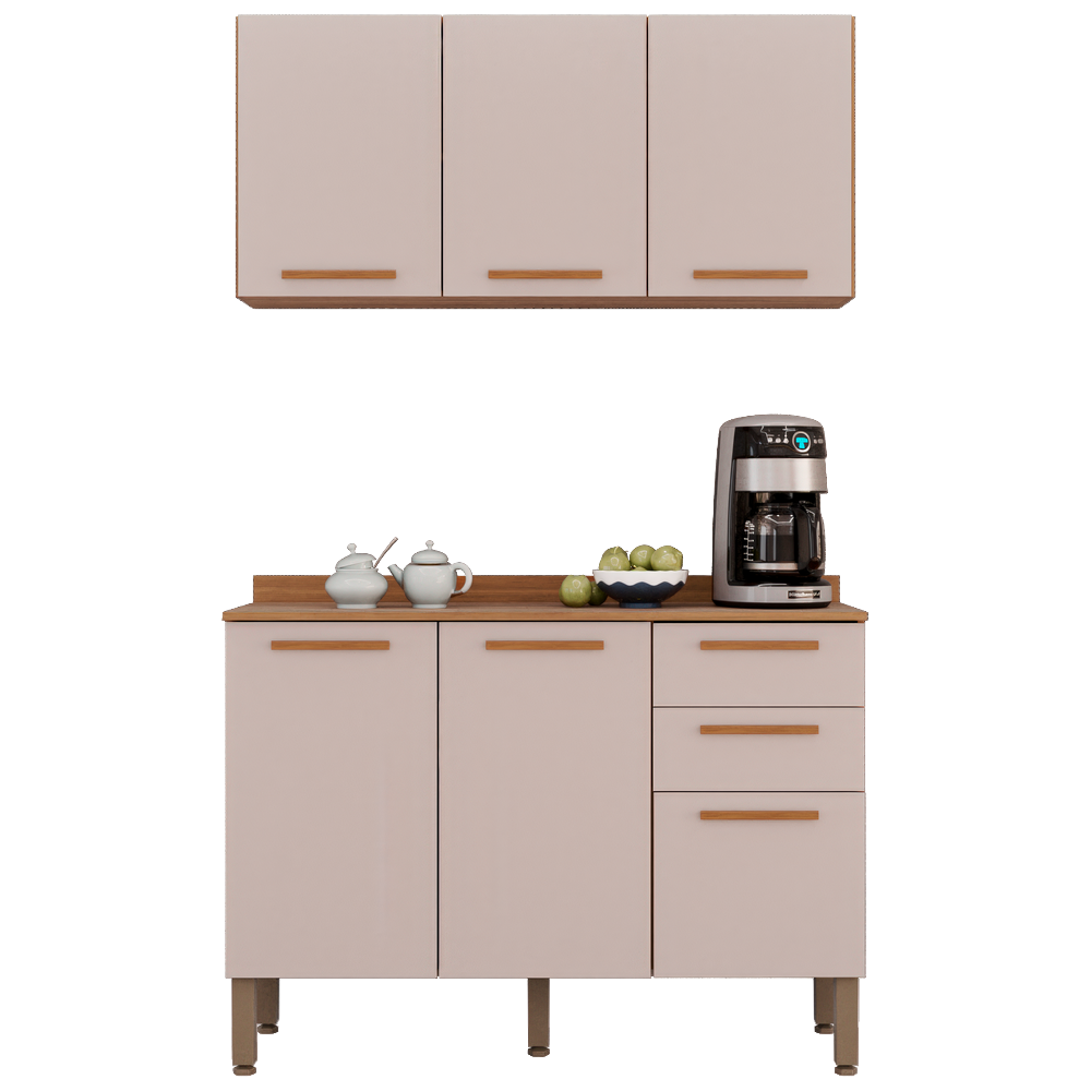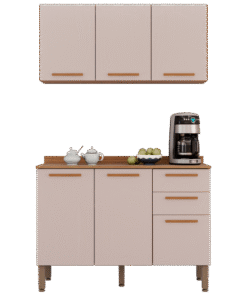 Armário Aéreo Triplo + Balcão New Valência Cinamomo/Off White – SALLÊTO