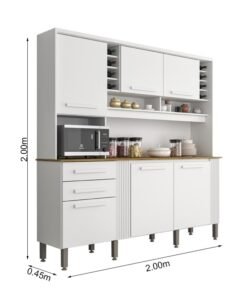 3{%%}Descrição{%%}Armário Cozinha Catar Branco 6 Portas 2 Gavetas Larg. 2.00m – Sallêto