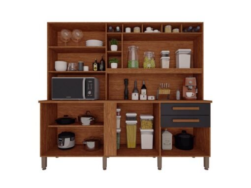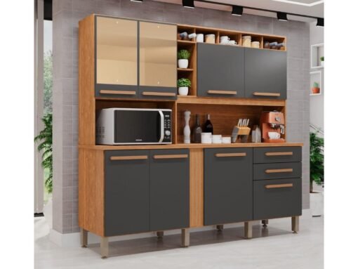 Armário Kit de Cozinha Antonella c/espelho 7 Portas 3 Gavetas – Cinamomo/Grafite