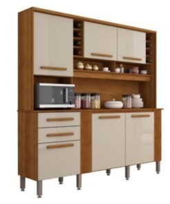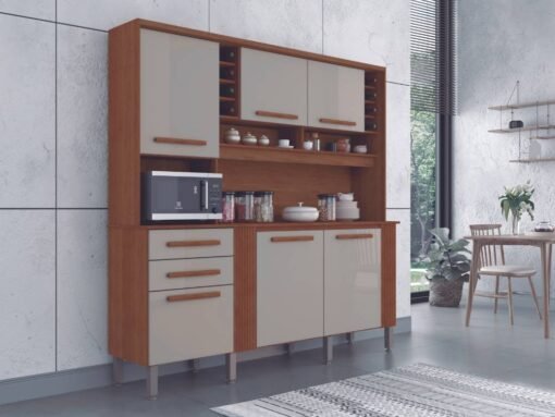 Armário Kit de Cozinha Catar 6 Portas 2 Gavetas – Cinamomo/Off White
