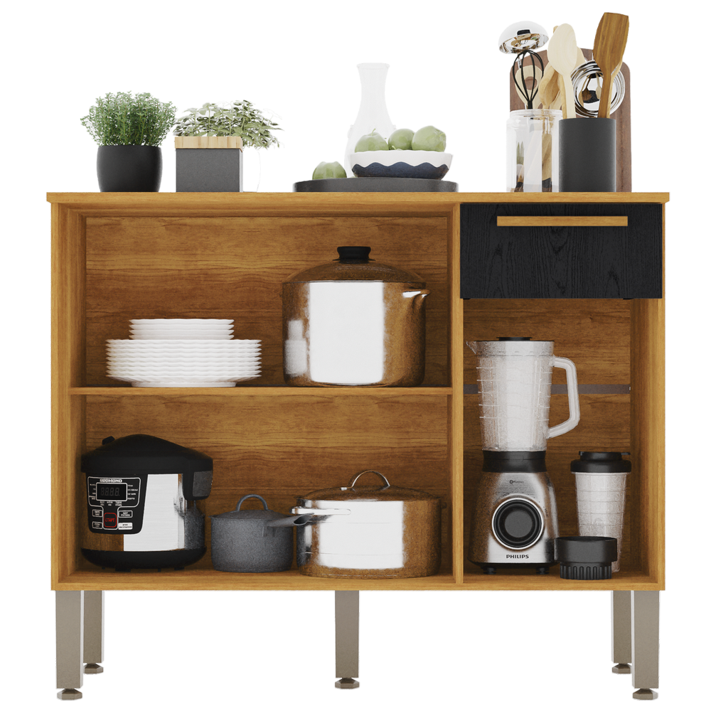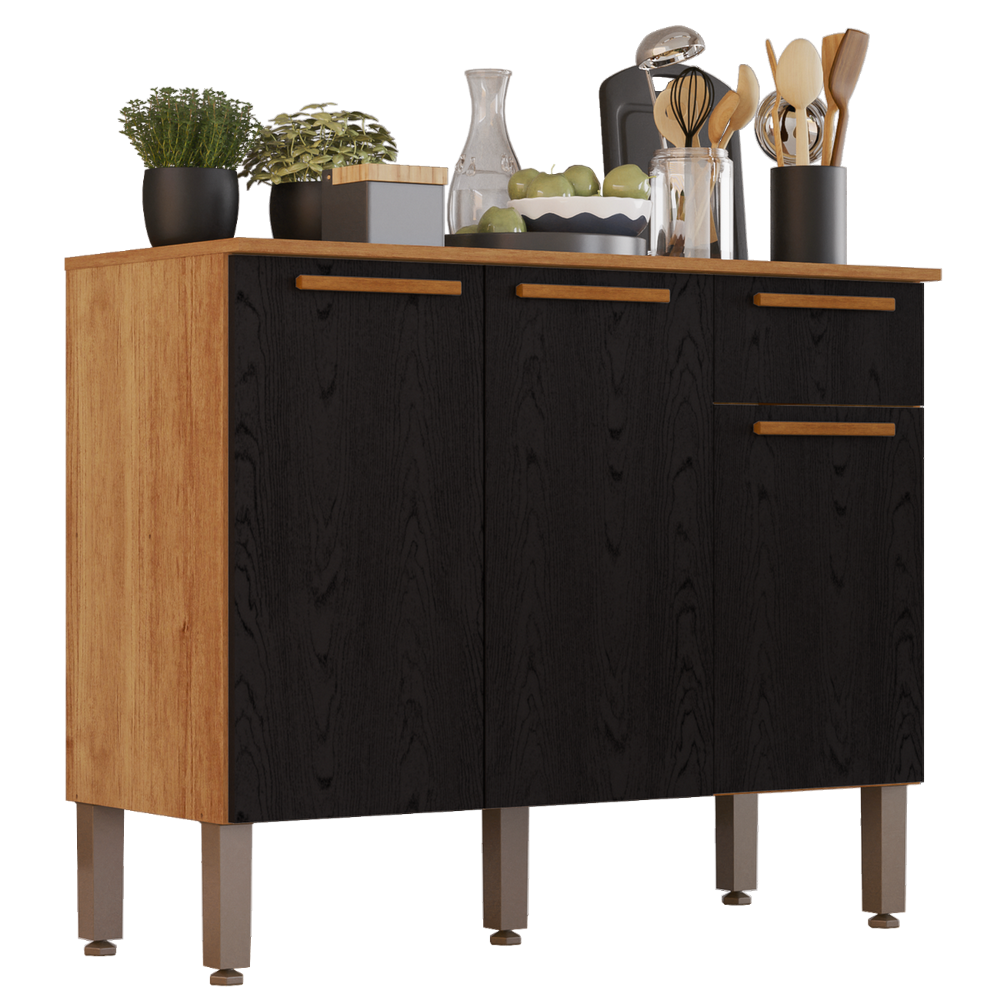 Balcão 3P1G Madri Cinamomo/Preto – SALLÊTO