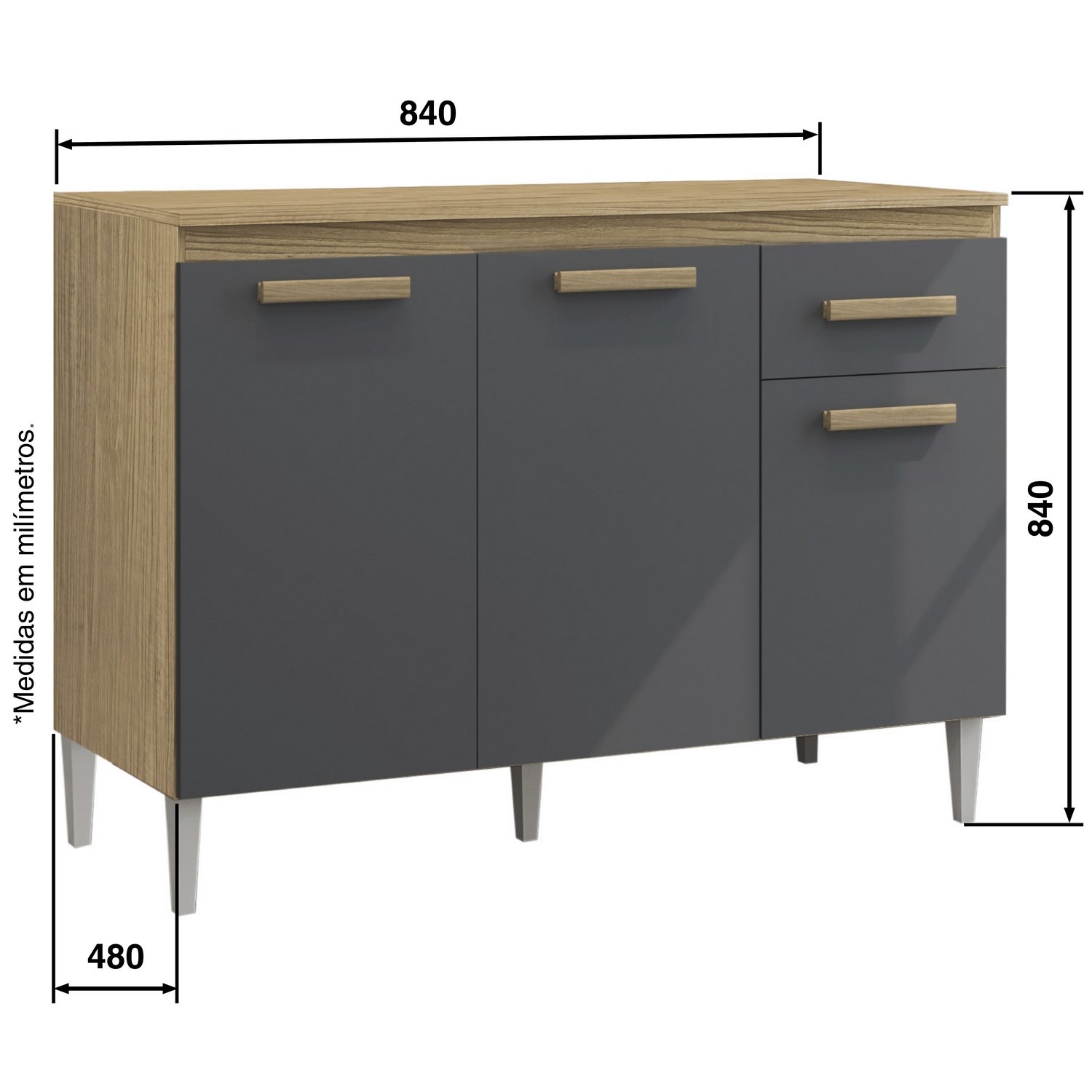 Balcão 3P1G Vitória/Naiomi Atacama/Grafite – ARAMÓVEIS