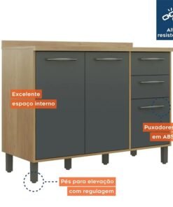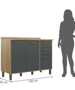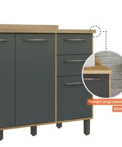3{%%}Descrição{%%}Balcão Áustria 3 Portas 2 Gavetas Cinamomo/Grafite Larg. 1.20m Valdemóveis