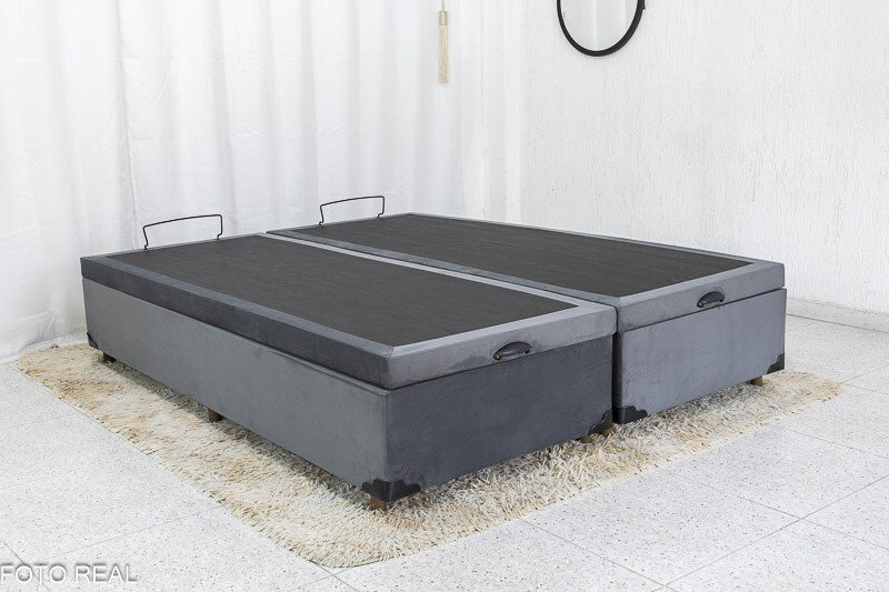 3{%%}Descrição{%%}Base Box Baú Queen Bipartido Eli 158x198x42 Veludo Grafite Blindado Nature