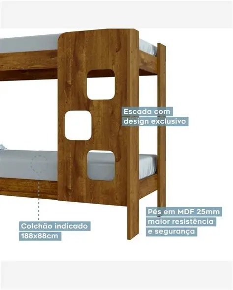 -Suporta até 100 quilos cada cama MDF