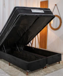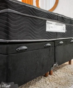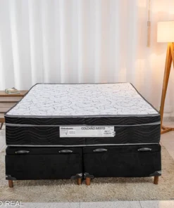 Box Baú Casal Bipartido Carioca Sued Preto Blindado Bioflex + Colchão Casal Ortopédico EPS Airtech 150 Ortopillow 138x188x28 – Ortobom | Suporta até 240kg