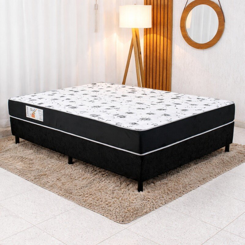 3{%%}Descrição{%%}O Conjunto Box Casal Nosso Sonho com colchão 100% espuma D33 oferece firmeza, conforto e alta durabilidade para noites de sono realmente renovadoras. O colchão possui densidade D33 de alta resistência, tecido em malha respirável e tratamento antiácaro, antibacteriano e antimofo, garantindo mais saúde e bem-estar.