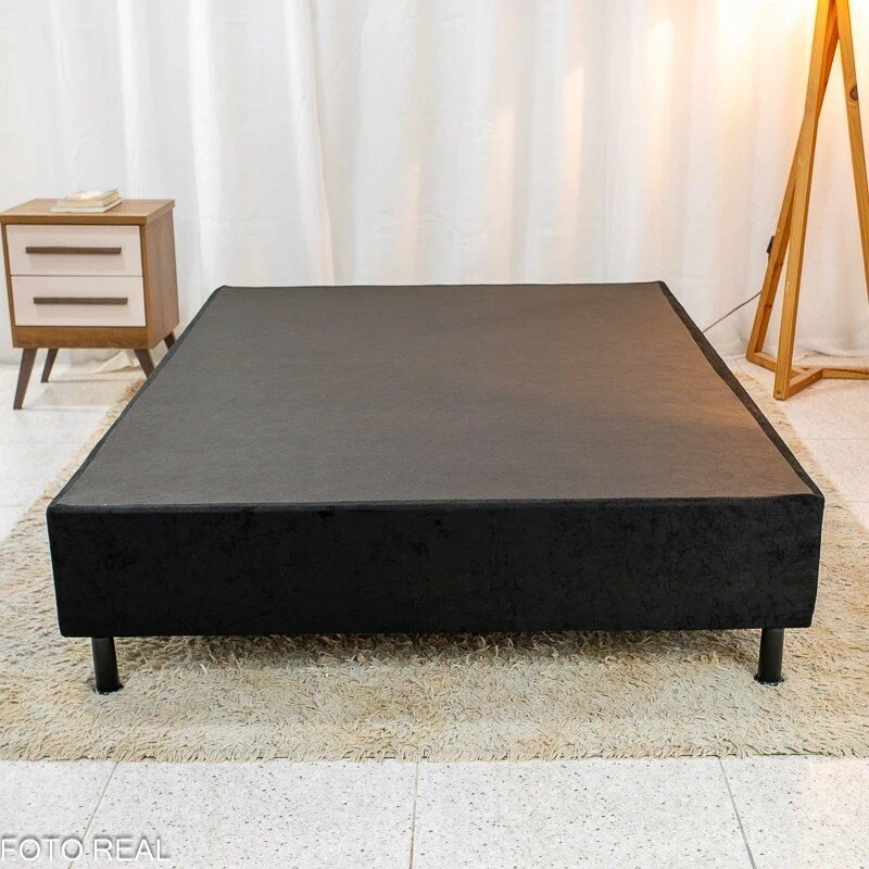 A base box, fabricada em madeira de eucalipto de reflorestamento e revestida em suede, é resistente, estável e suporta até 250 kg. Com 57 cm de altura total aproximadamente, o conjunto traz presença ao ambiente e combina facilmente com qualquer decoração.