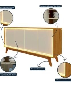 Buffet Requinte com LED larg. 1.60m Naturale/Off White Gelius