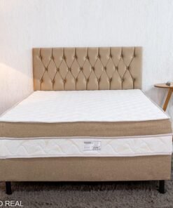 3{%%}Descrição{%%}Cama Box Casal Sonho Bom Premium Ortopédica D33 138x188x62 – Nosso Sonho + Painel Cabeceira Lavínia Veludo Bege | Suporta até 250kg