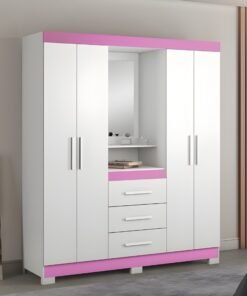 Roupeiro Solteiro Recife Cinamomo/Branco 6 Portas 2 Gavetas C/Pés Larg. 1.53m – Carioca