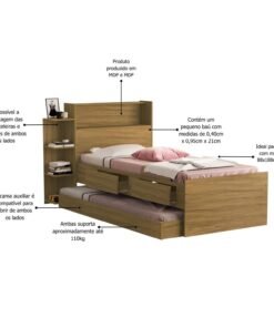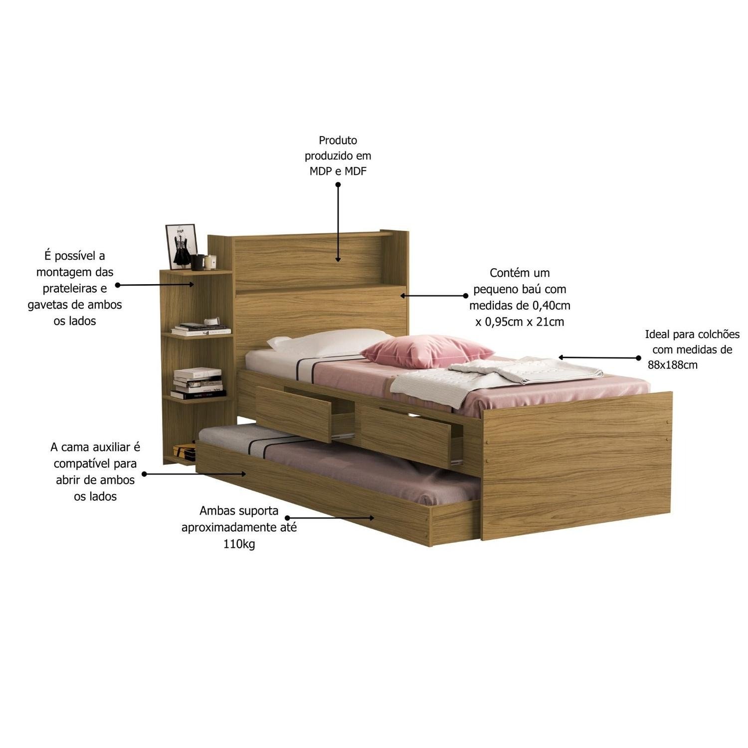 Cama Solteiro Duo Box + Cama auxiliar D33 88x188x60 – Rondomóveis