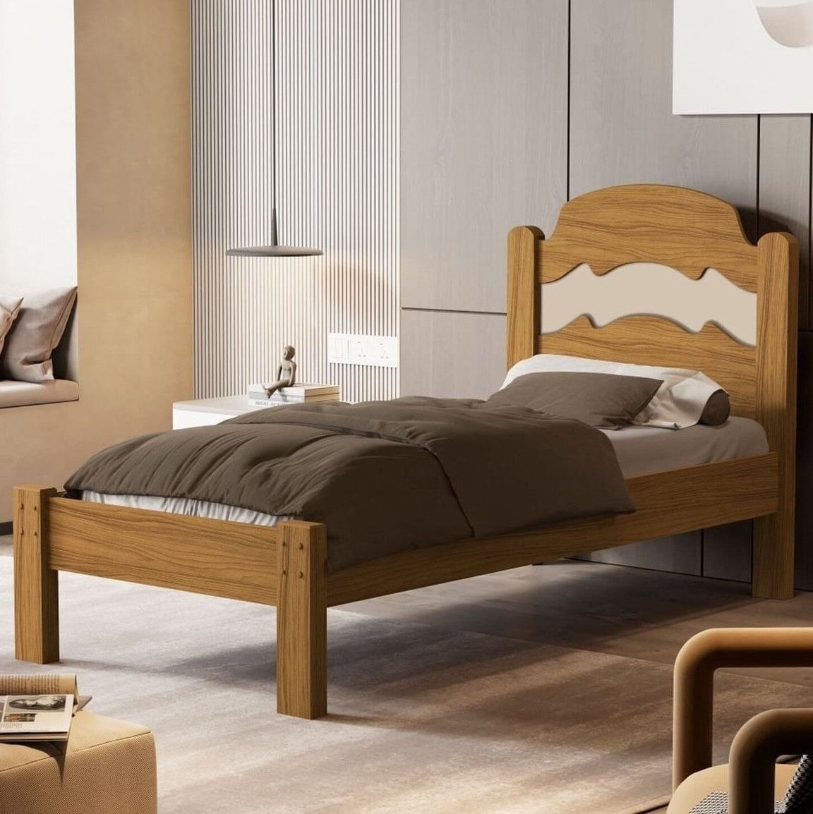 Cama Solteiro Íris Nature/Off White/Nature – VJ MÓVEIS