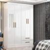 Roupeiro Solteiro Hercules Branco 04 Portas 02 Gavetas C/Espelho e Pés Larg. 1.18m – Carioca