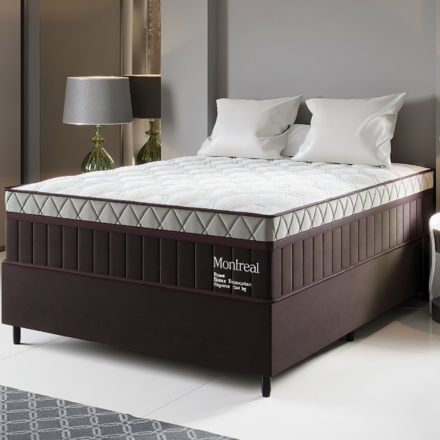 COLCHAO CASAL MONTREAL D28 + BASE BOX SIMPLES CORINO MARROM – VIERO MOVEIS + BIOSTAR