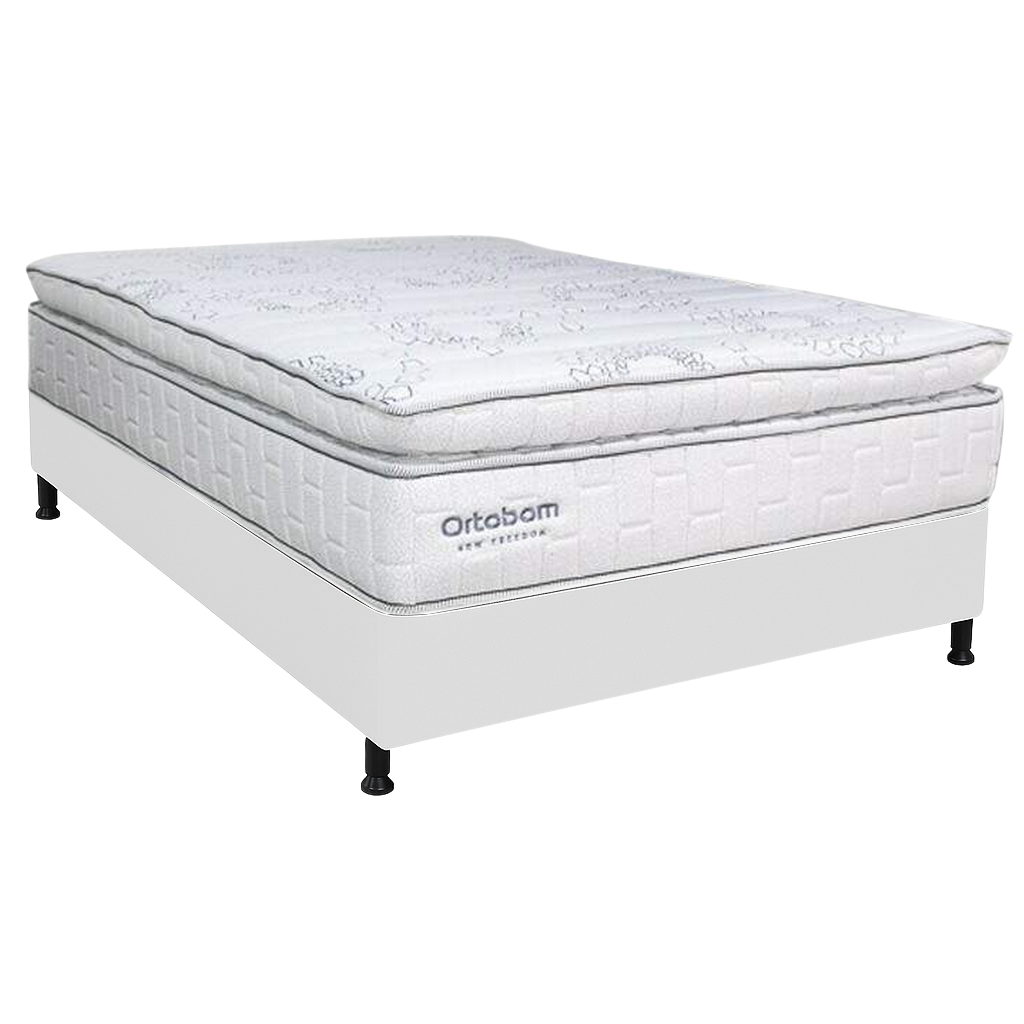 Colchão Casal New Freedom + Base Box Simples Corino Branco – ORTOBOM + BIOSTAR