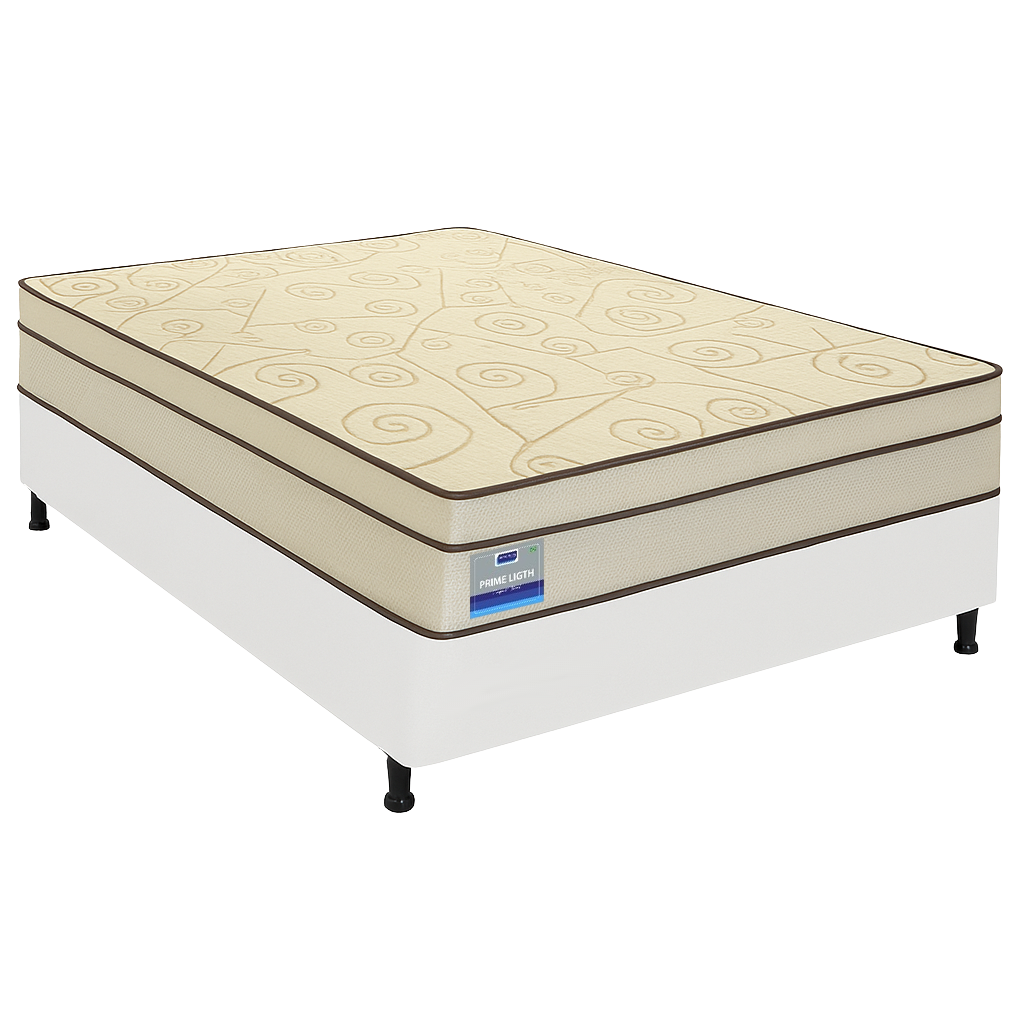 Colchão Casal Prime Light D28 + Base Box Simples Corino Branco – ORTHOPRIME + BIOSTAR